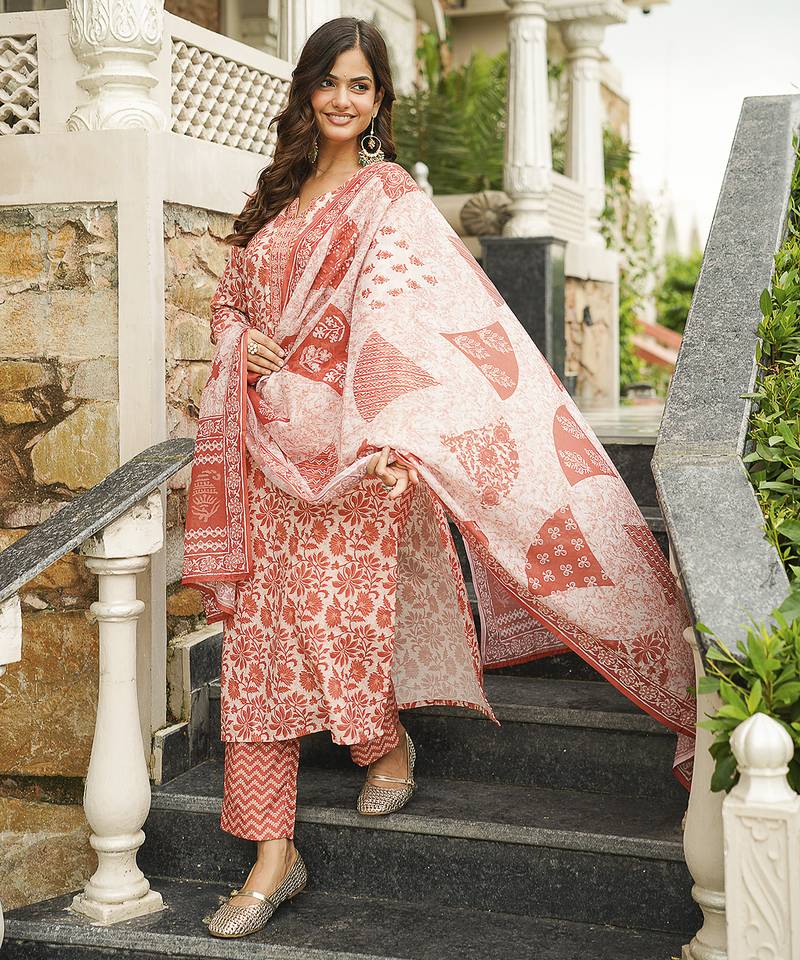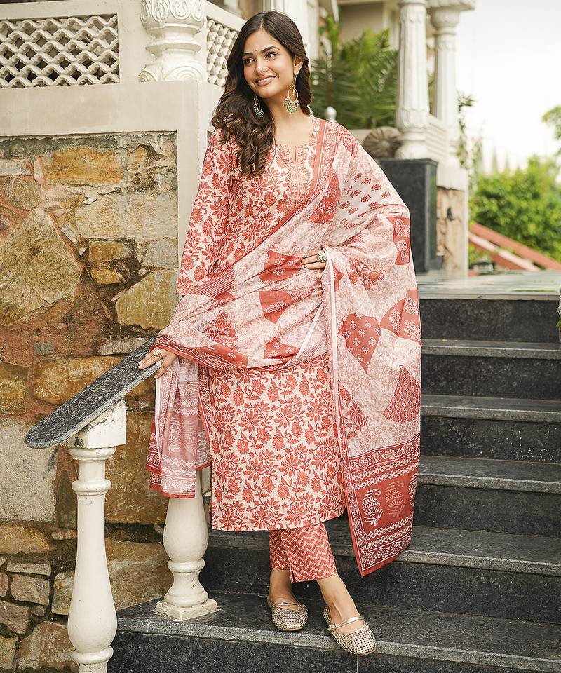 | Product Name | Women Orange Rayon Blend Floral Printed Straight Kurta Trousers With Dupatta | |
