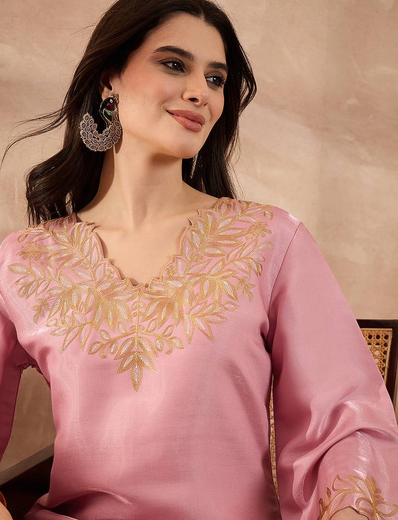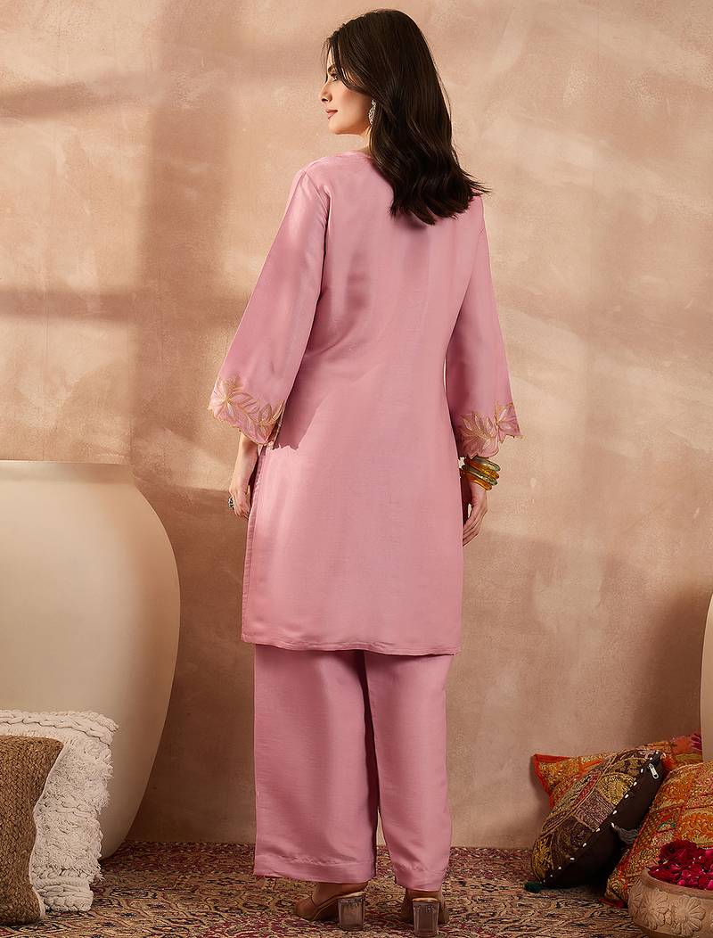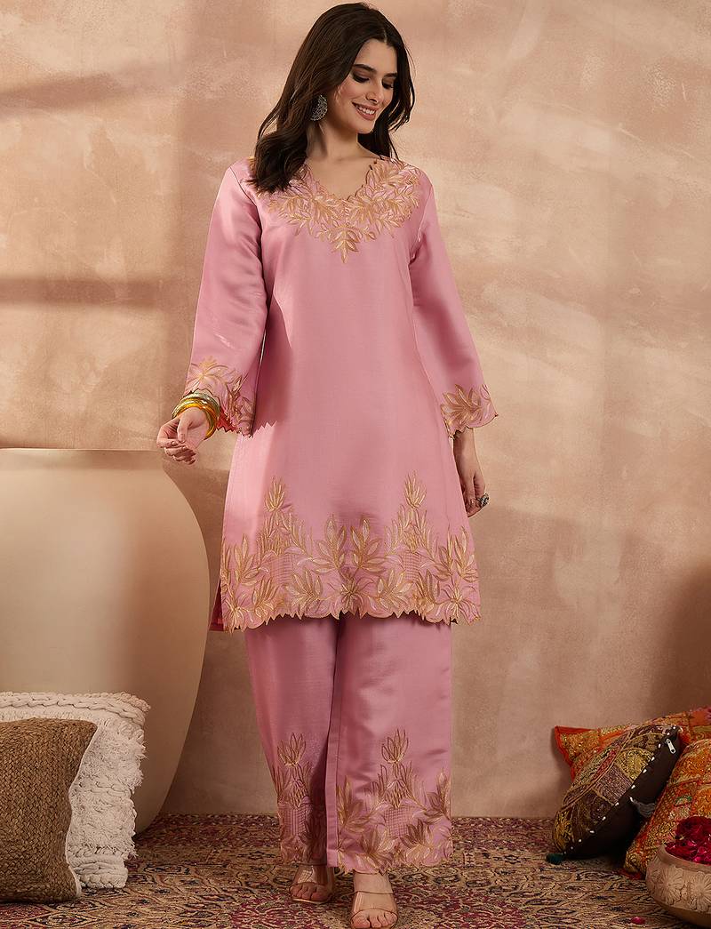 | Product Name | Women Pink Silk Blend Embroidered Scalloped Coord Sets | |