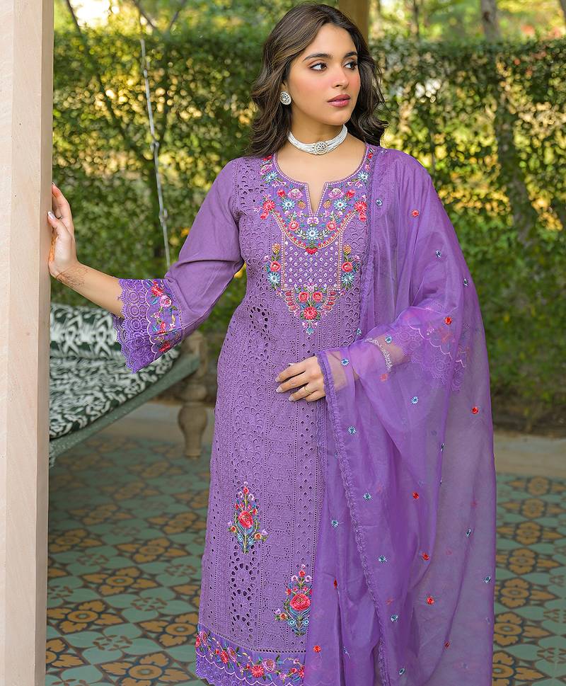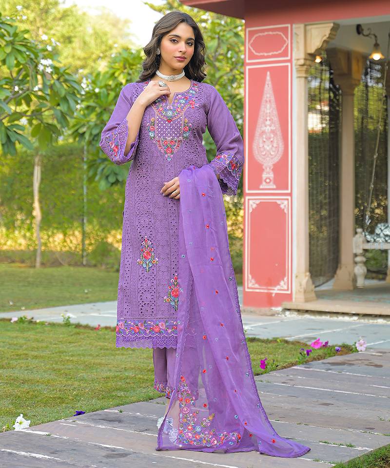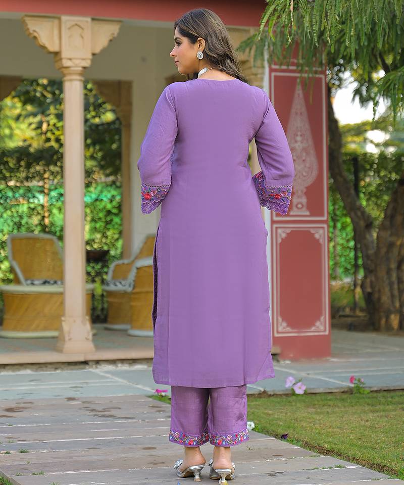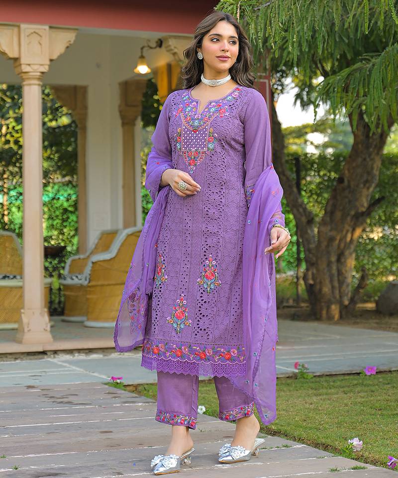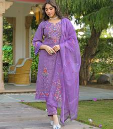 | Product Name | Women Purple Viscose Embroidered Straight Kurta Trousers With Dupatta | |