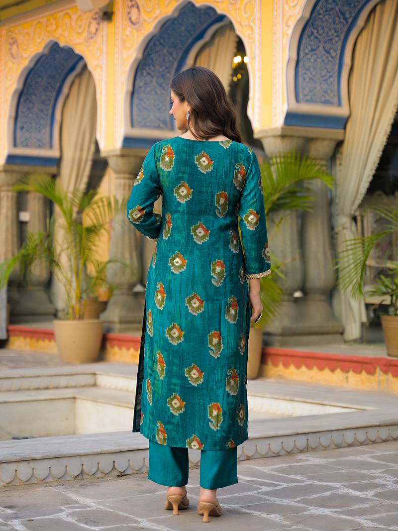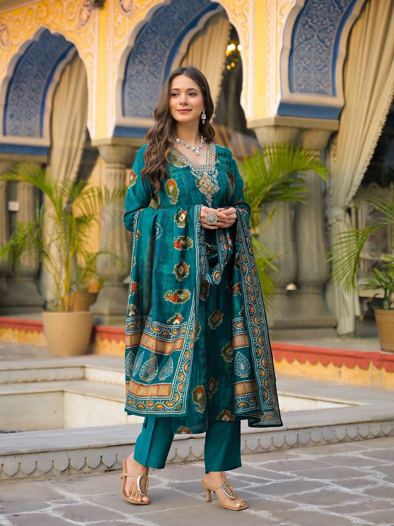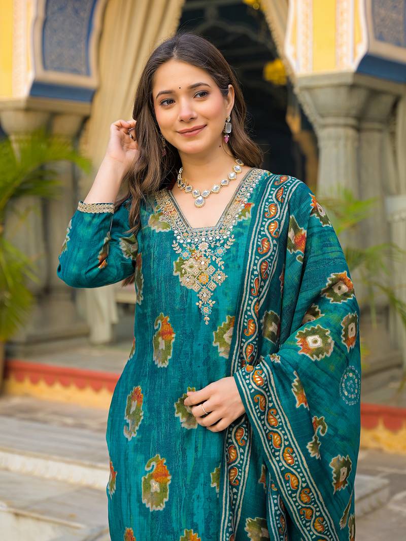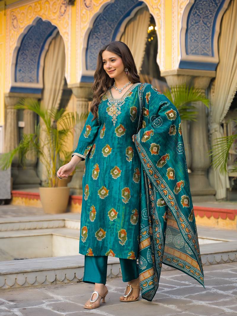 | Product Name | Women Teal Viscose Embroidered Straight Kurta Trousers With Dupatta | |