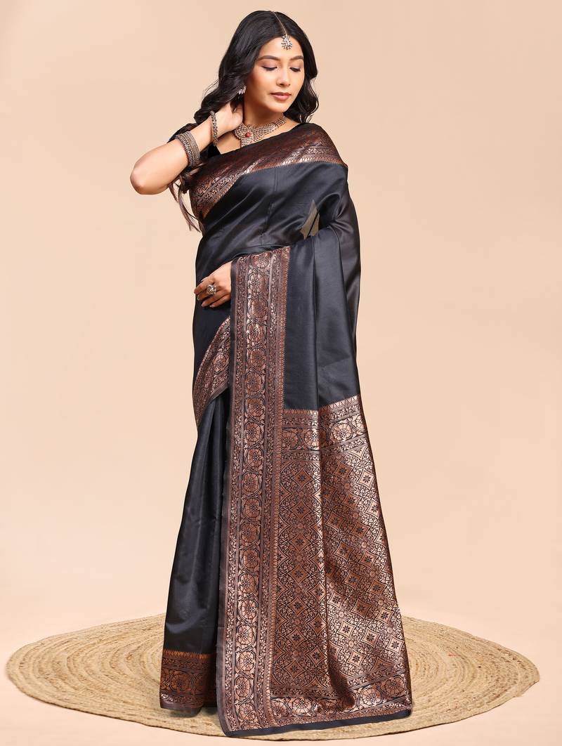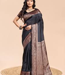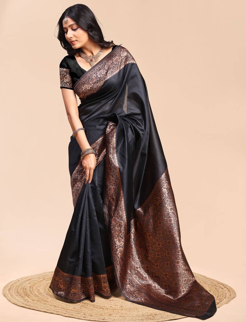 Black color weaving jacquard traditional saree with blouse piece