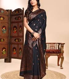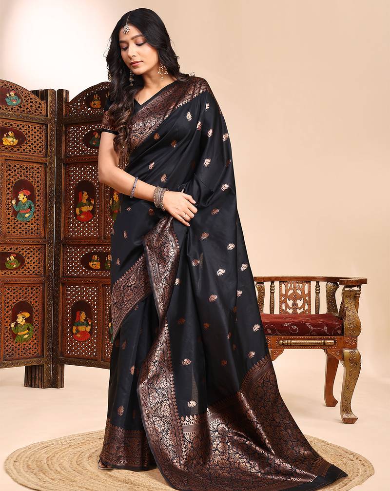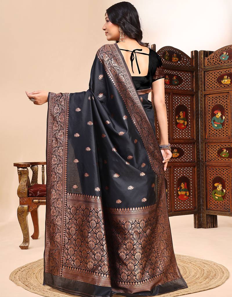 Black color weaving jacquard traditional saree with blouse piece