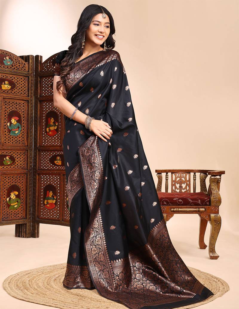 | Product Name | Black Color Weaving Jacquard Traditional Saree With Blouse Piece | |