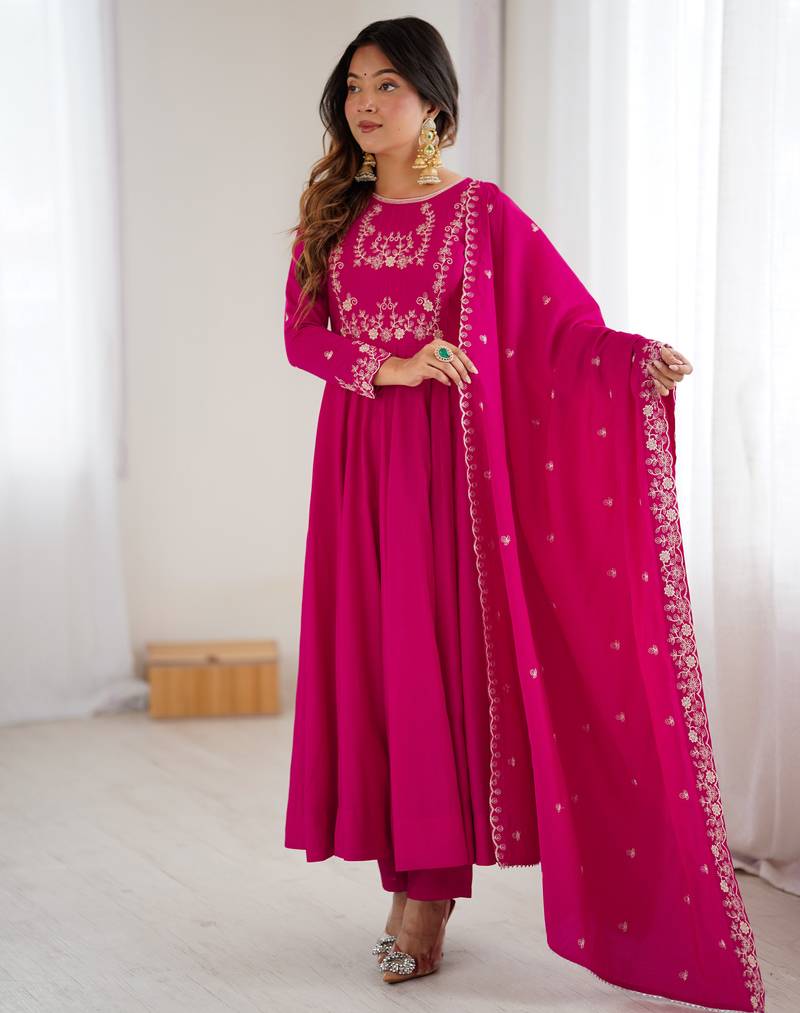 Designer magenta anarkali dress with matching dupatta stitched