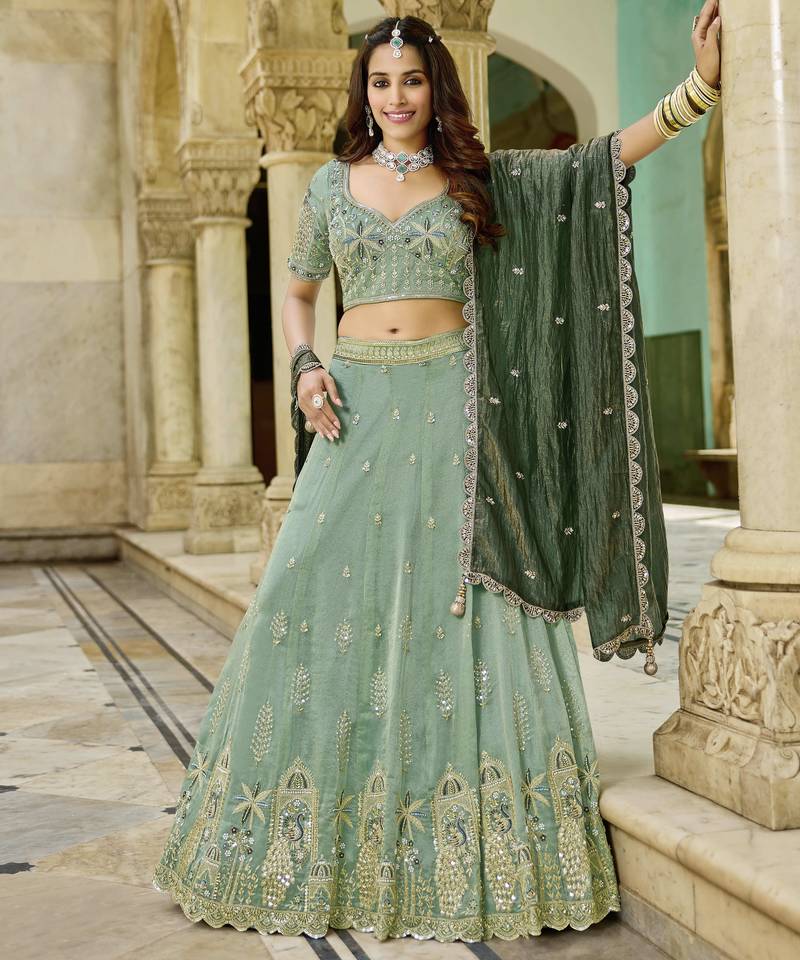 | Product Description | Step Into The Spotlight Wearing This Mesmerizing Mint Green Lehenga That Exudes Grace And Charm. This Exquisite Ensemble Is Crafted From Premium Tissue Fabric, Giving It A Luxurious And Soft Texture. The Detailed Thread Embroidery And Heavy Beadwork Elevate This Outfit, Making It A Stunning Choice For Weddings, Receptions, Or Festive Occasions. The Unique Elegance Of This Piece Reflects Timeless Craftsmanship, Making It A True Masterpiece For Lehenga For Women Who Want To Embrace Sophistication With A Modern Touch. Perfect For Grand Celebrations, It Ensures You Will Turn Heads And Receive Countless Compliments. |