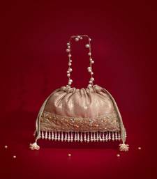 Product Description | Elevate Your Festive And Bridal Look With Our Vivaah, Exquisitely Handcrafted Potli Bag, Designed To Reflect Timeless Charm And Elegance. Made Using Rich Organza Silk Fabric, The Bag Features Intricate Cut Dana Lace Work And A Stunning Pearl Fringe Border That Adds Graceful Movement. The Pearl Handle Offers A Luxurious Grip, While Delicate Pearl And Crystal Tassels Complete The Look With Sparkle And Sophistication. Perfect For Weddings, Festive Occasions, Or As A Statement Accessory With Your Ethnic Ensemble.