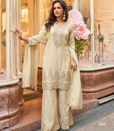 Beige viscose silk readymade plazzo suit with embroidery work-free size stitched