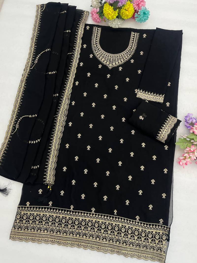 Product Name Black Faux Georgette Semi Stitched Suit With Embroidery Work