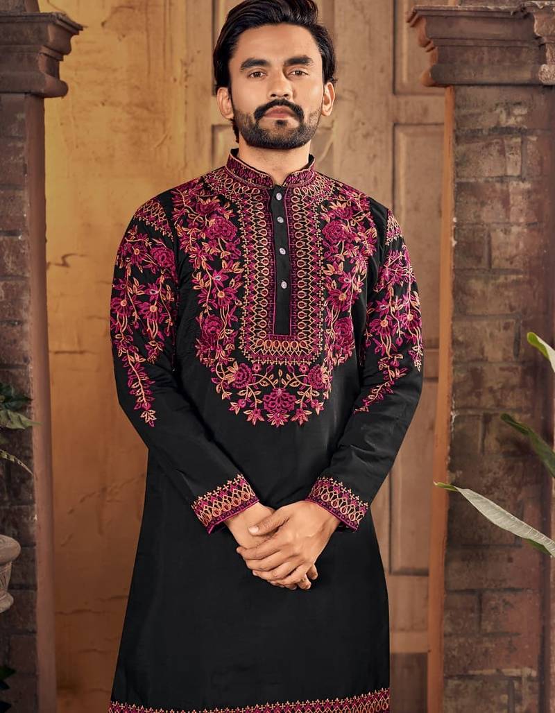 | Product Name | Black Multi Thread Work Silk Straight Kurta | |