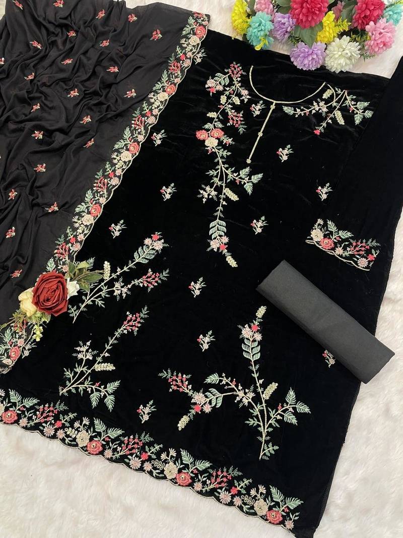 Product Name | Black Pure Velvet Semi Stitched Suit With Heavy Embroidery Sequence Work | |