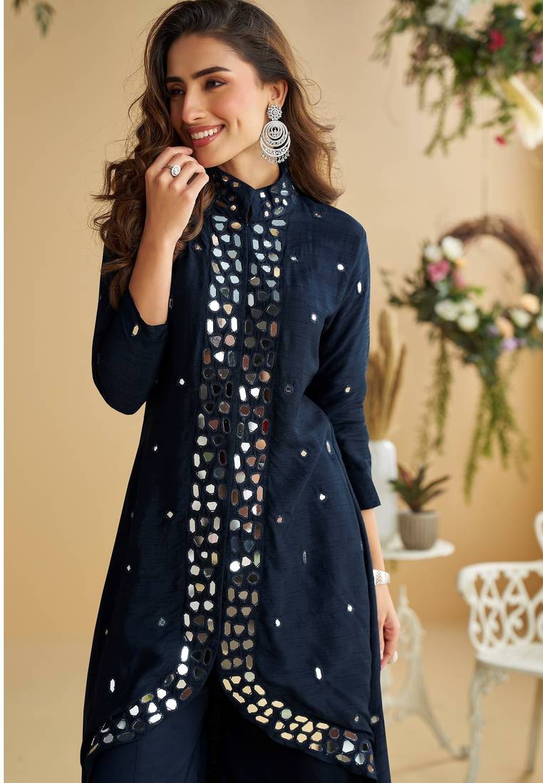| Product Name | Black Silk Stylish Readymade Suit With Real Mirror Work | |