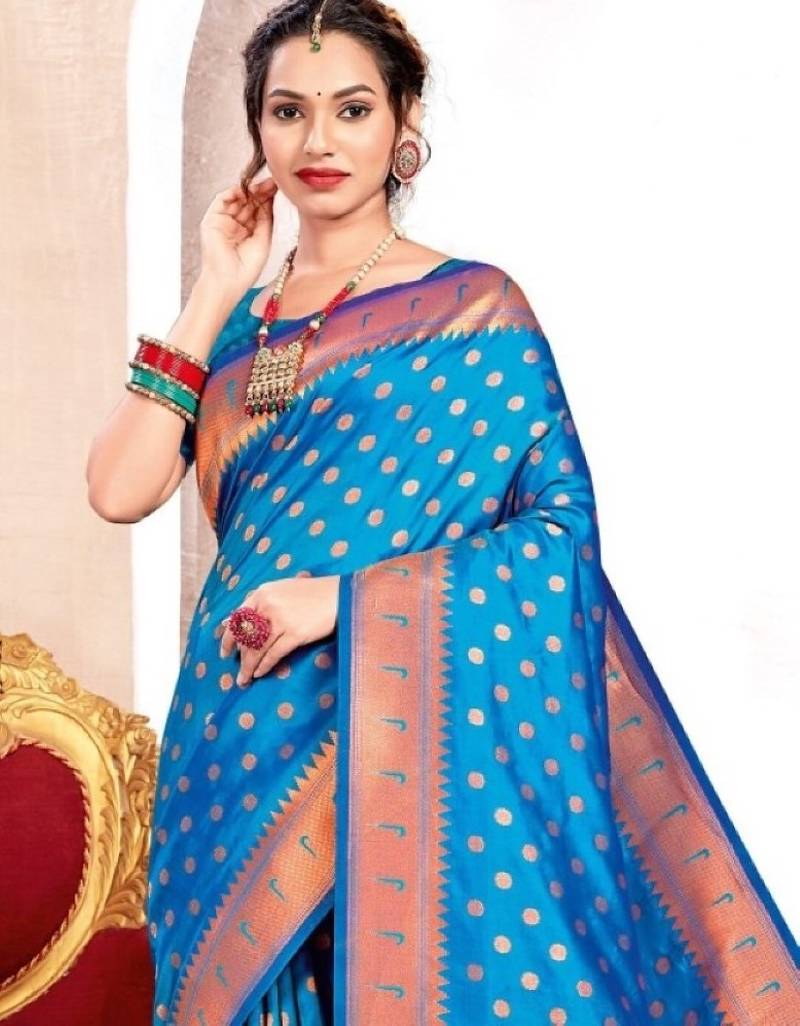 | • | Saree | : | Color- Blue / Fabric- Paithani Silk |