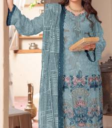 Blue chiffon semi stitched suit with embroidery & sequence work