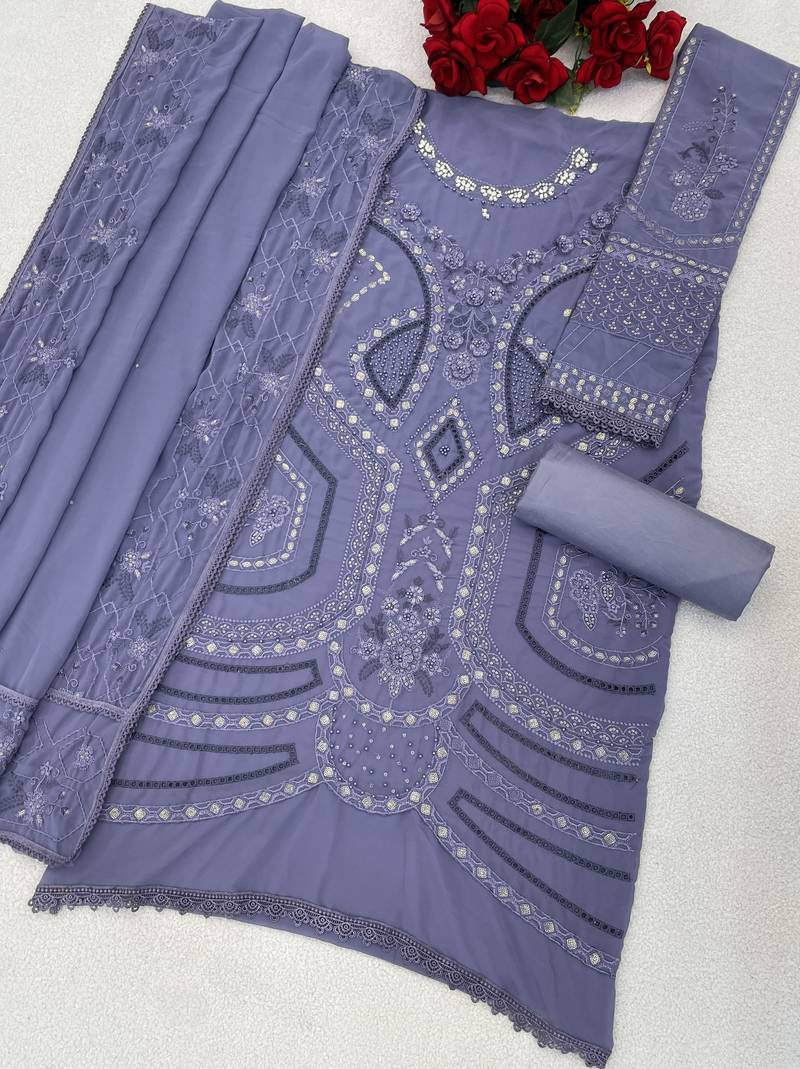 Blue georgette semi stitched suit with embroidery sequence & moti work