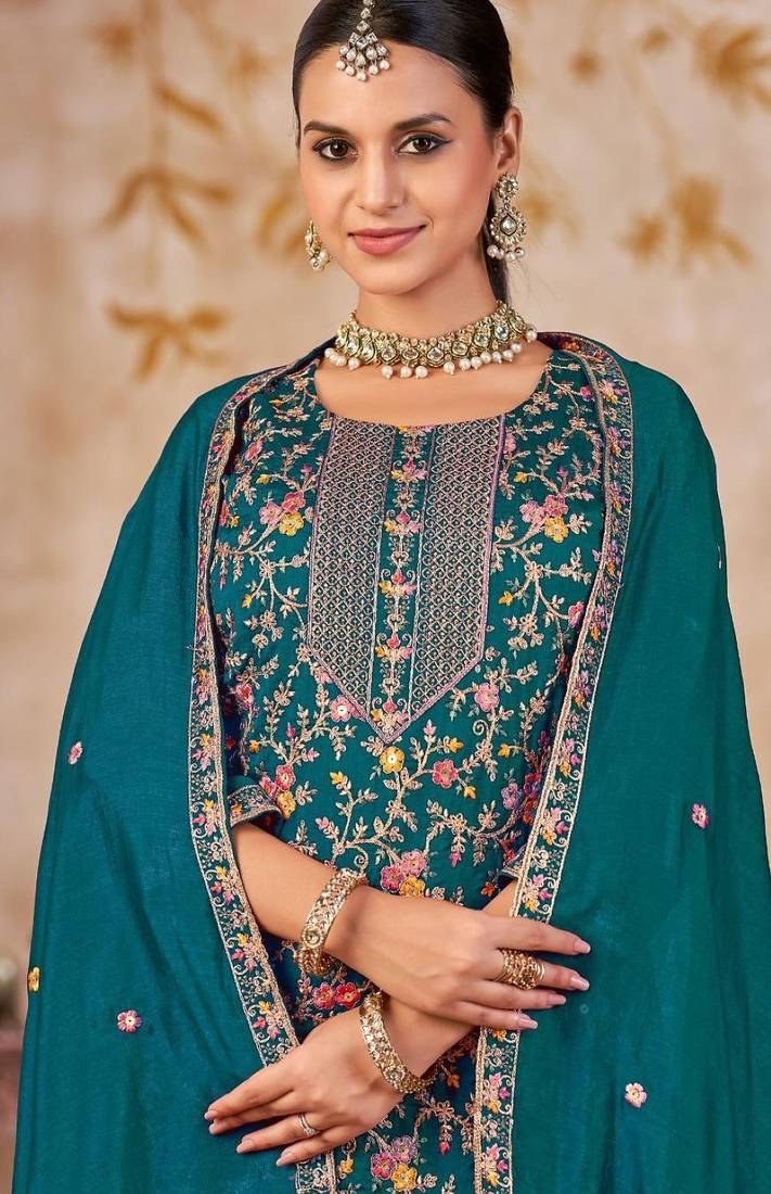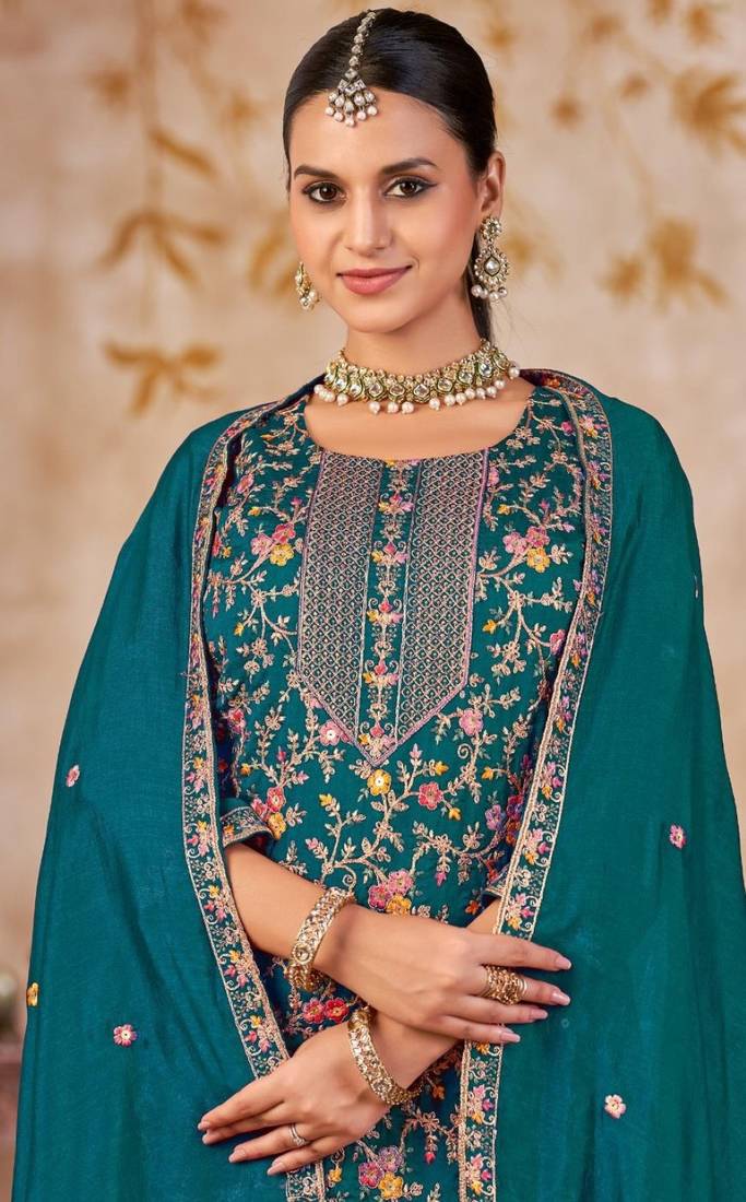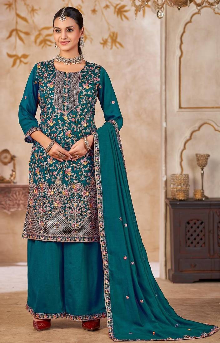 | Product Name | Blue Vichitra Silk Readymade Plazzo Suit With Embroidery & Lace Work | |