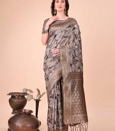brown cotton fabric with with jacquard work and zari weaving saree with blouse