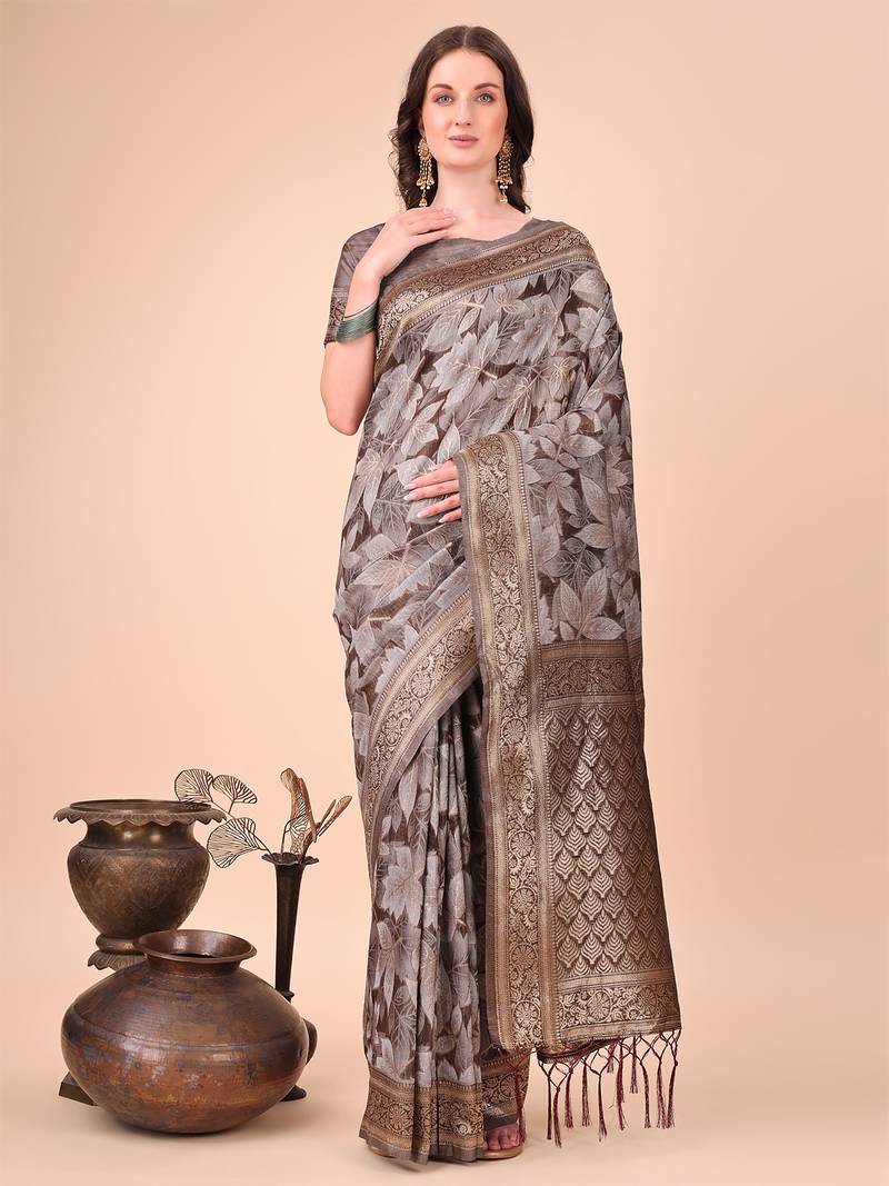 Product Name Brown Cotton Fabric With With Jacquard Work And Zari Weaving Saree With Blouse