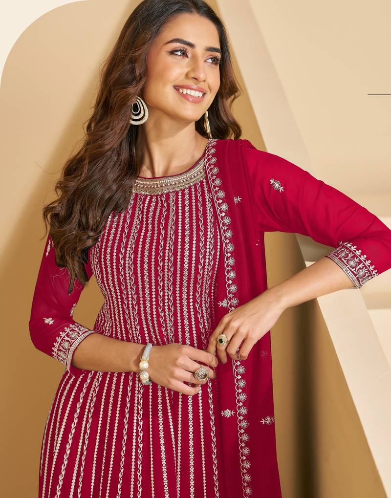 | • | Kameez | : | Color- Dark Pink / Fabric- Faux Georgette |