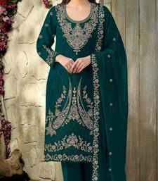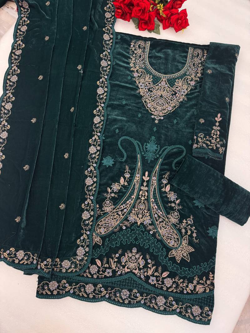 Dark green velvet embroidered sequin suit semi stitched