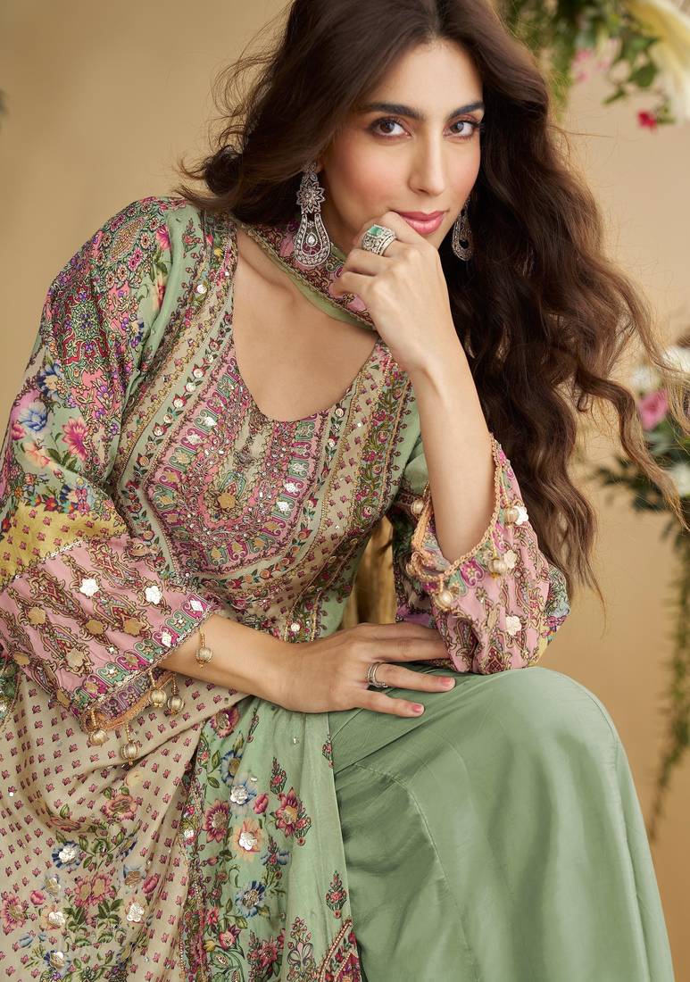Green crepe suit - full stitched free size