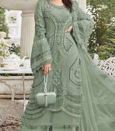 Green georgette semi stitched suit with embroidery sequence & moti work