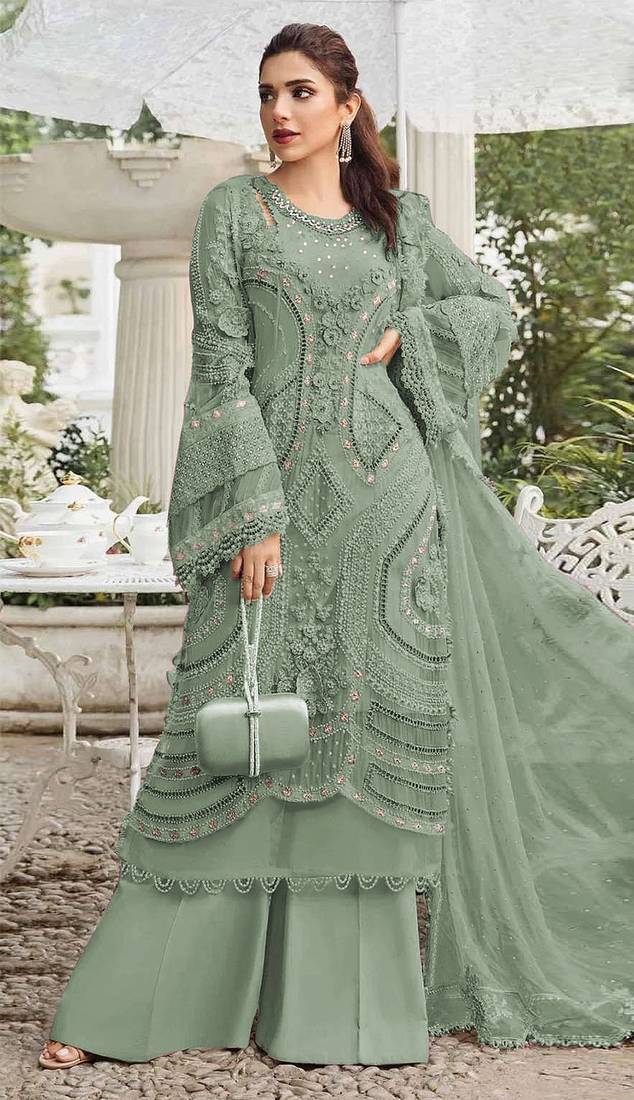 | Product Name | Green Georgette Semi Stitched Suit With Embroidery Sequence & Moti Work | |