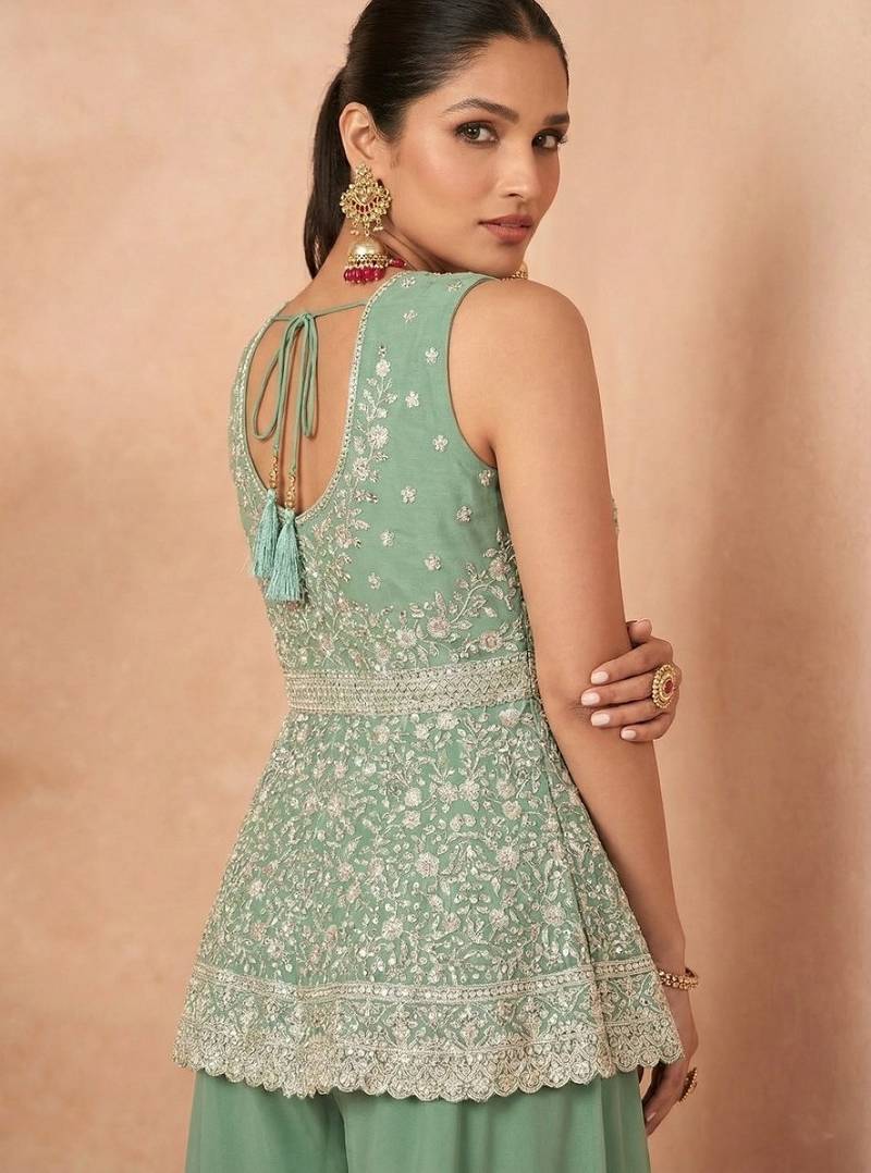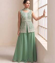 Green georgette stitched palazzo suit with embroidery & sequin work