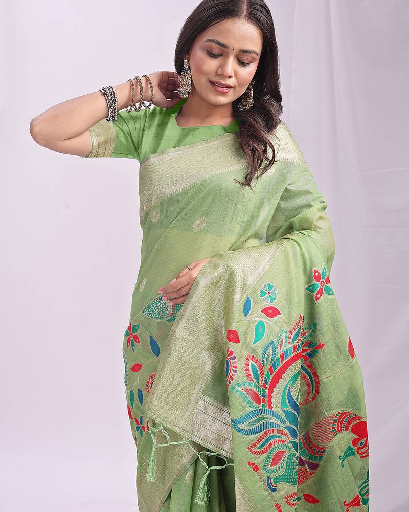 | Product Name | Green Linen Cotton Woven Saree With Blouse | |