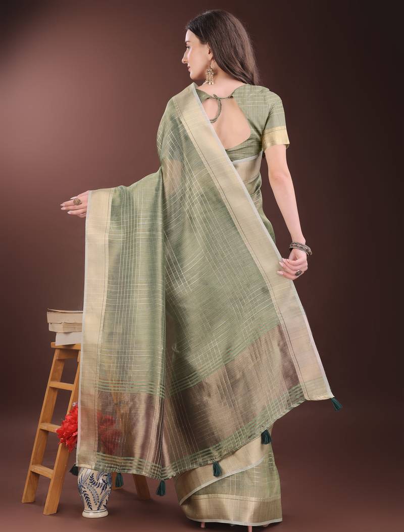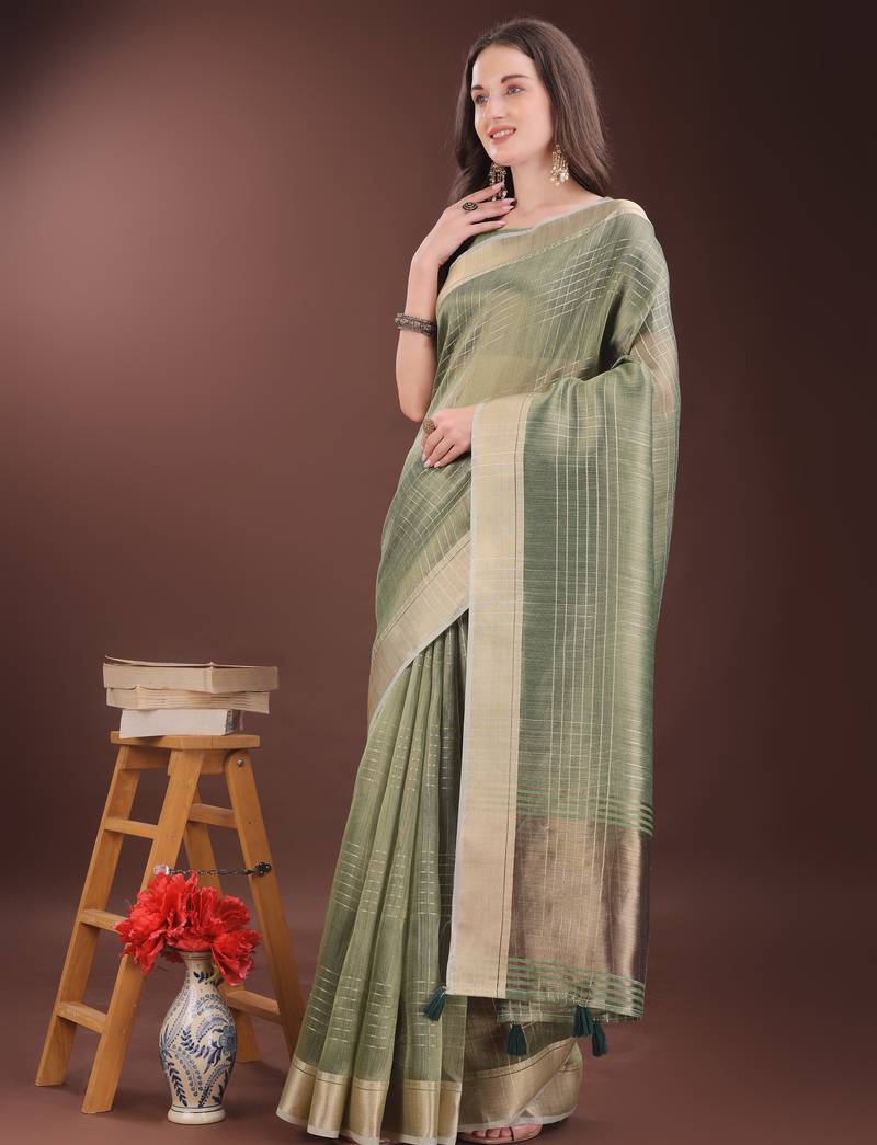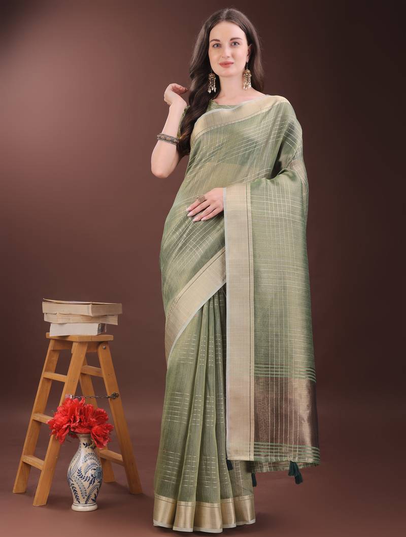 | Product Name | Green Organza With Thread Work And Zari Weaving Saree With Blouse | |