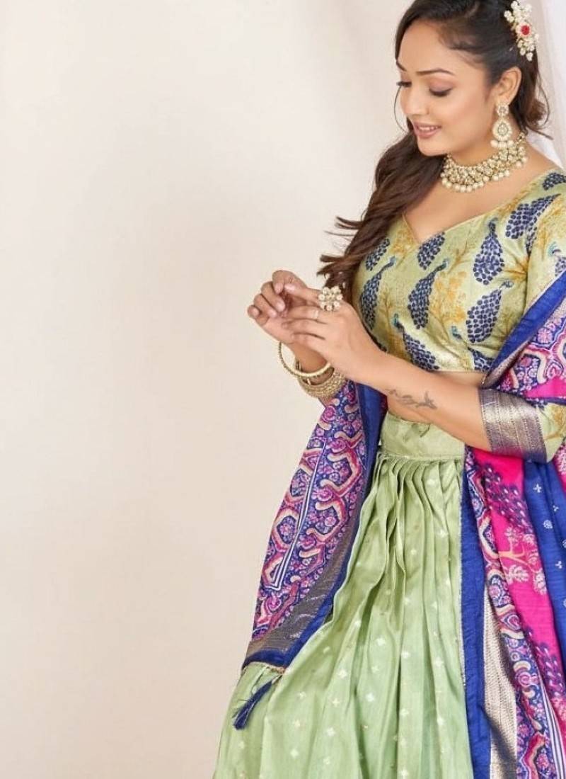 | Product Name | Green Patola Print Dola Silk Lehenga Set With Choli And Dupatta With Tassels | |