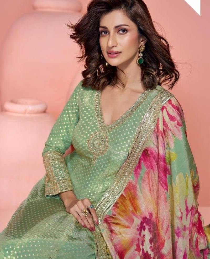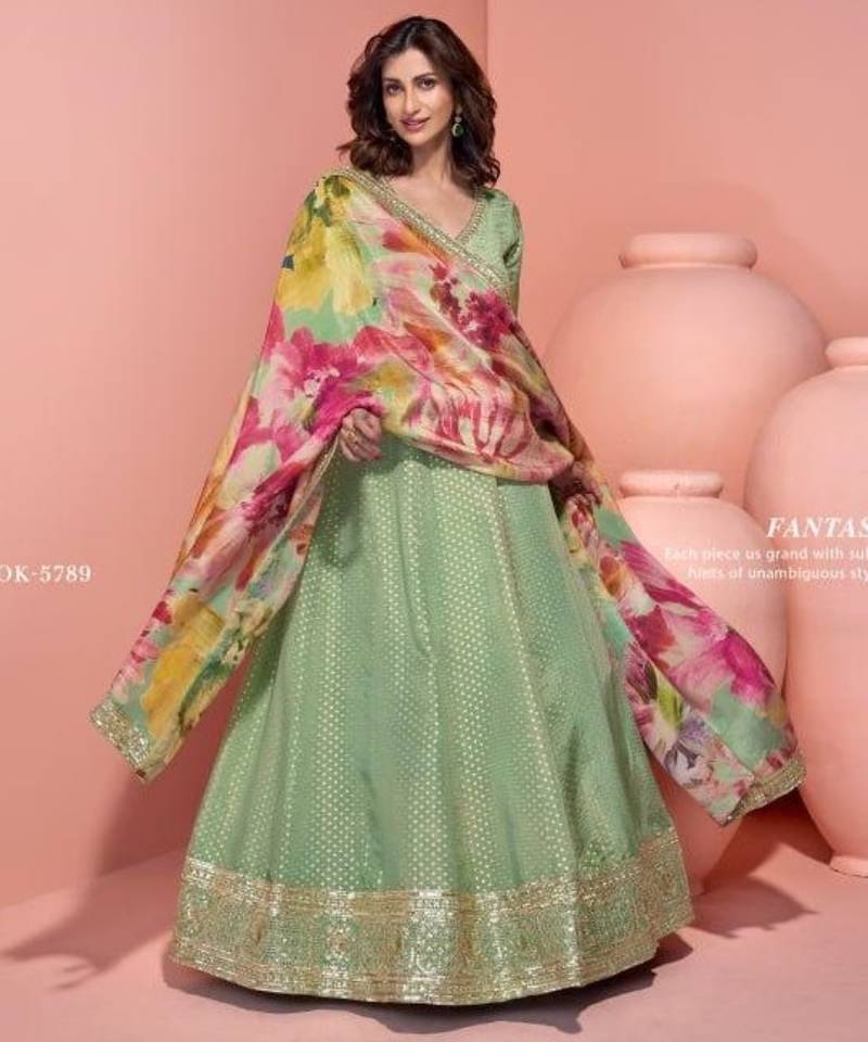 • | Dupatta | : | Color- Green / Fabric- Silk |