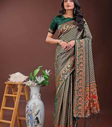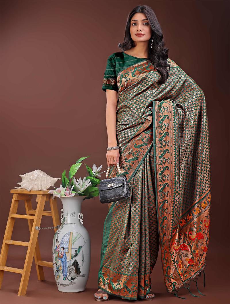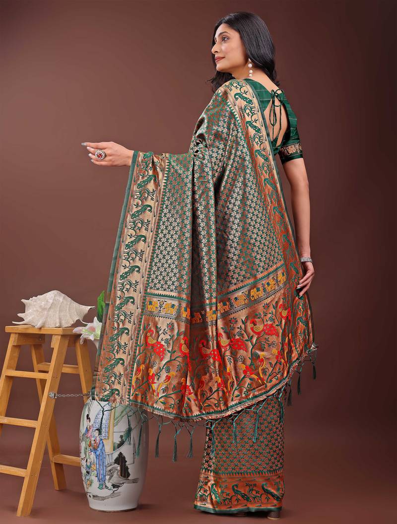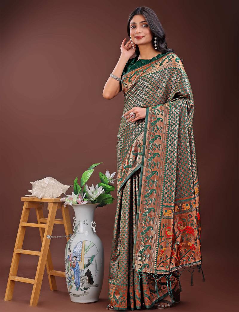 Green art silk fabric with jacquard work and zari weaving saree with blouse