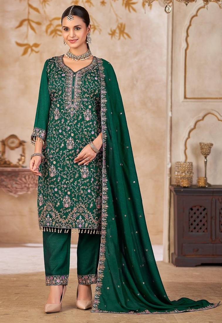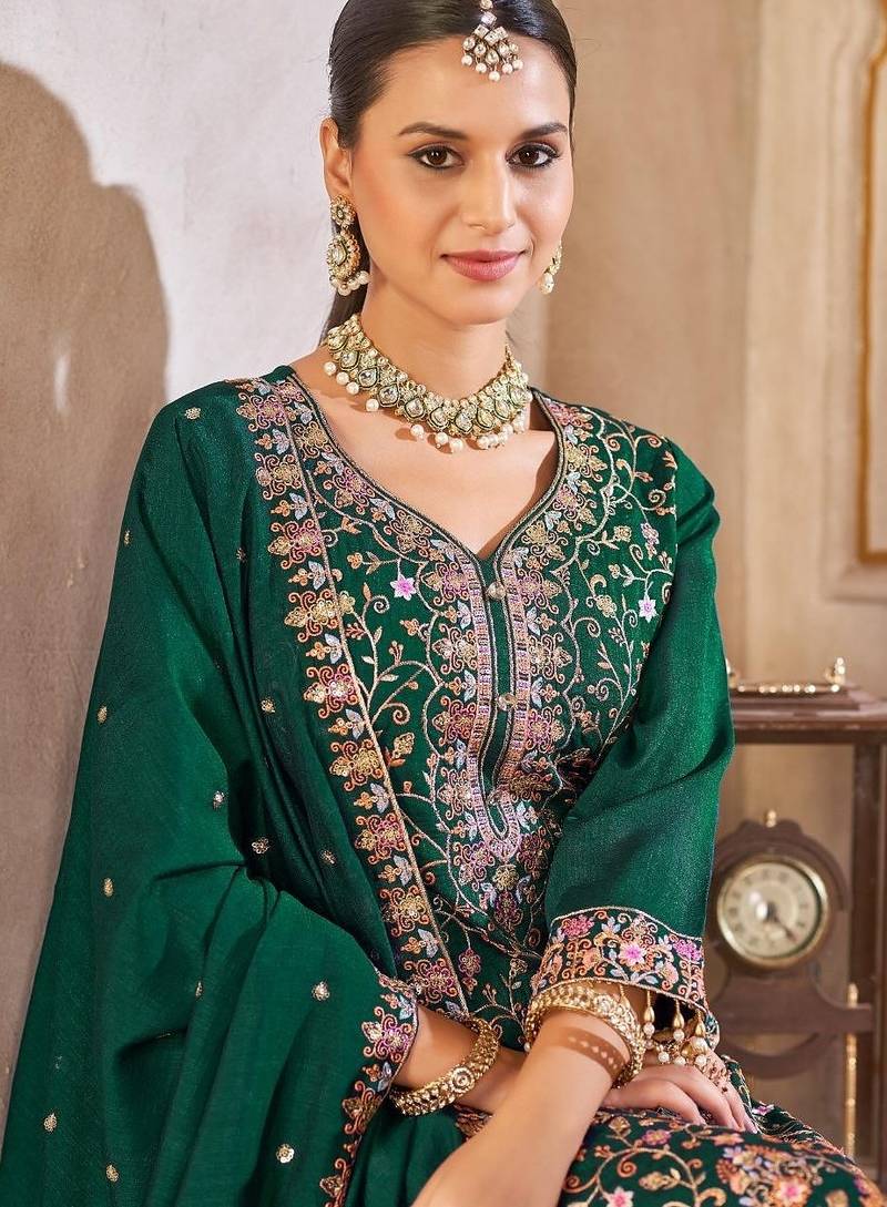 | Product Name | Green Vichitra Silk Readymade Suit With Embroidery & Lace Work | |