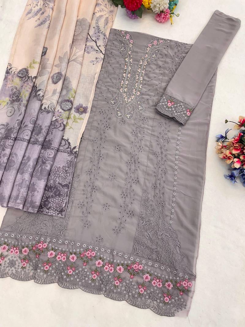 | Product Name | Grey Faux Georgette Semi Stitched Suit With Embroidery Work | |