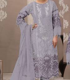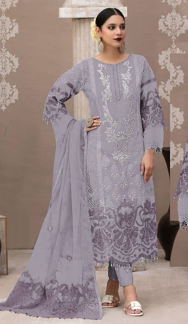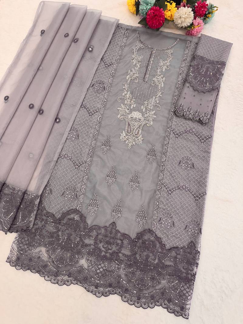 Lavender organza semi stitched suit with embroidery & sequence work
