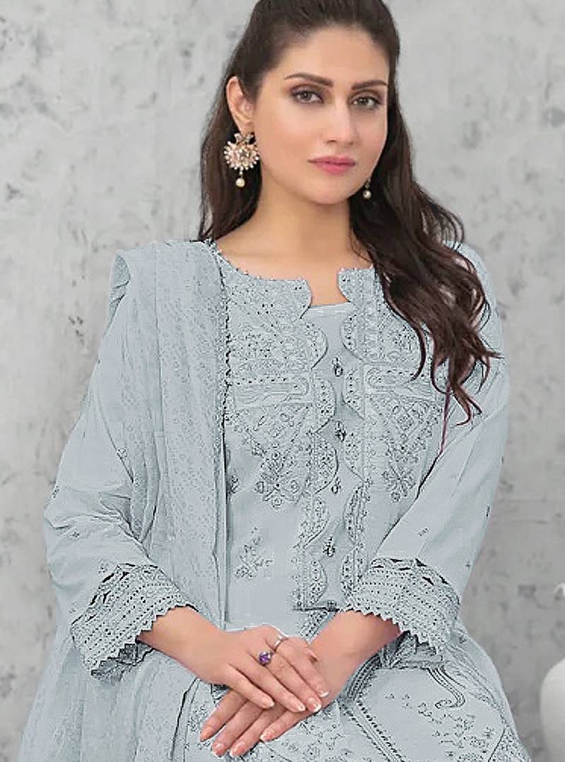 Light-aquablue embroderied cotton salwar suit semi stitched