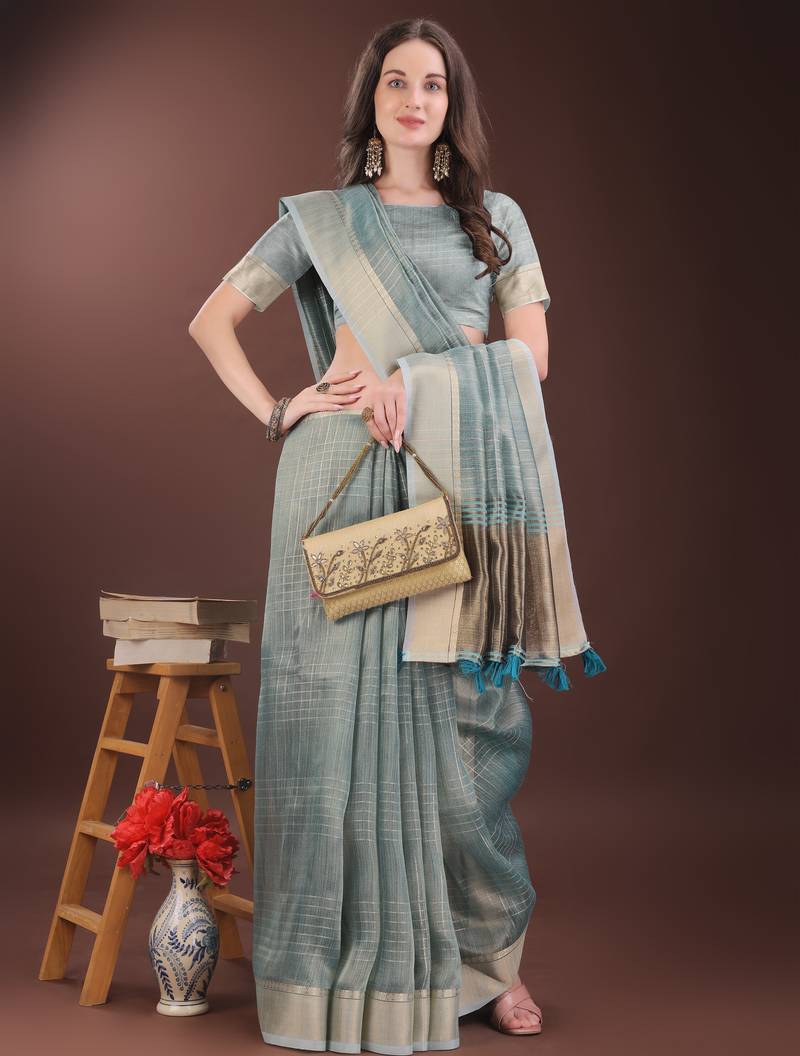 | Product Name | Light Blue Organza With Thread Work And Zari Weaving Saree With Blouse | |