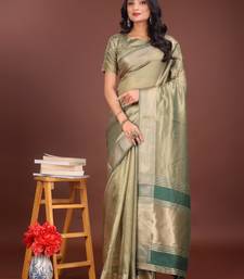 Light green organza with thread work and zari weaving saree with blouse