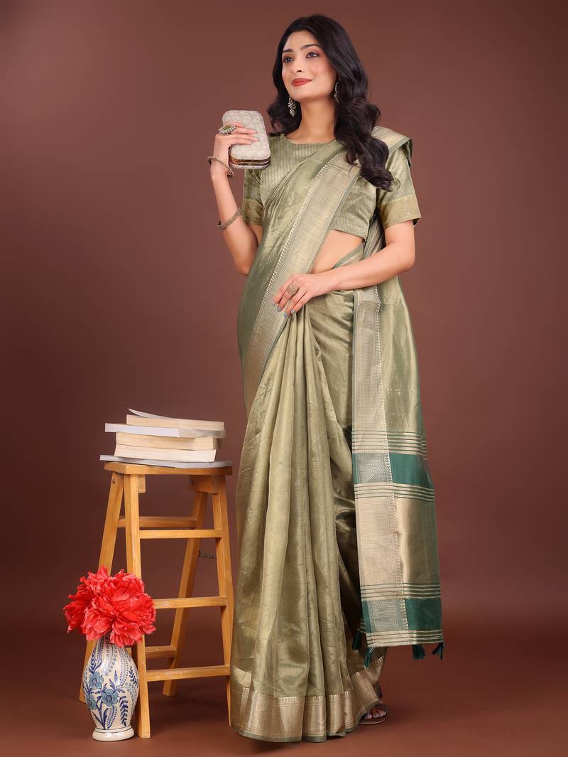 | Product Name | Light Green Organza With Thread Work And Zari Weaving Saree With Blouse | |