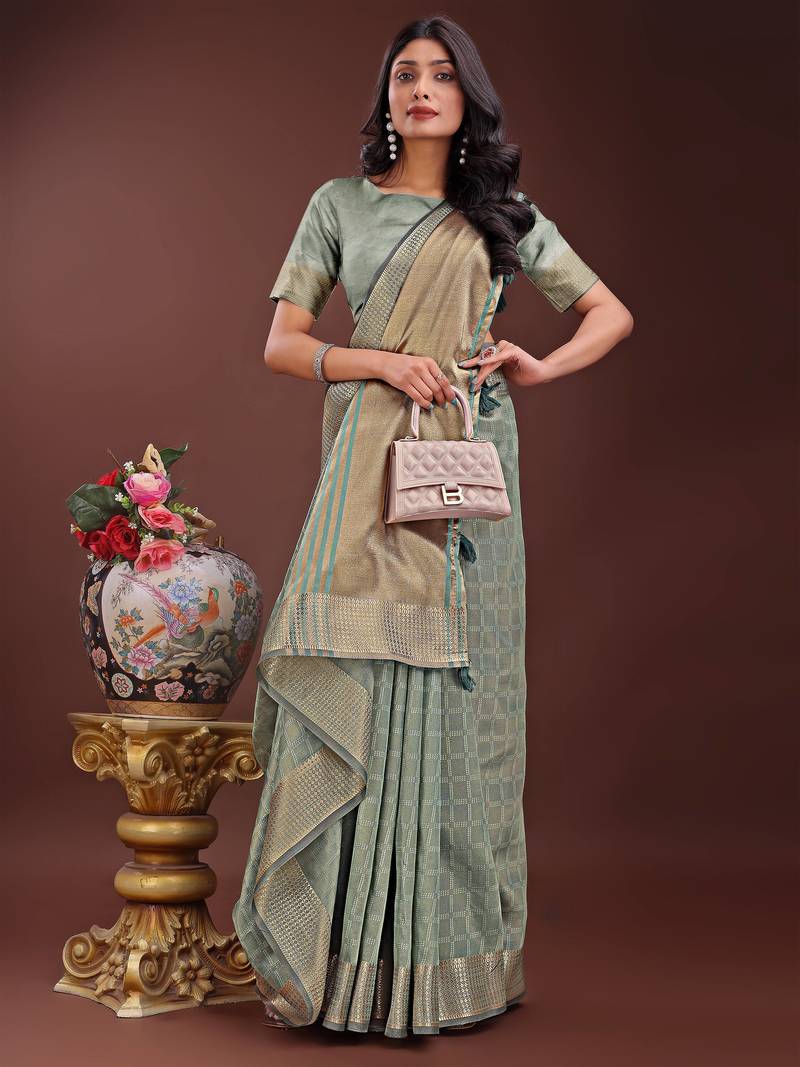 | Product Name | Light Green Organza With Thread Work And Zari Weaving Saree With Blouse | |