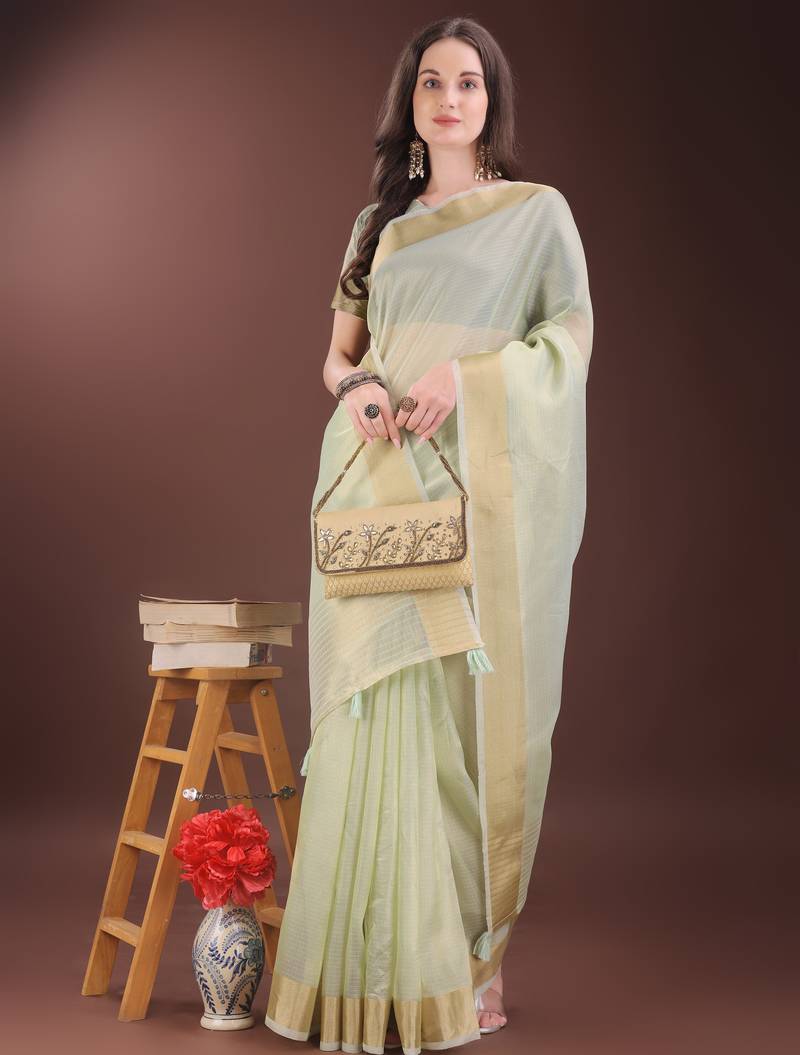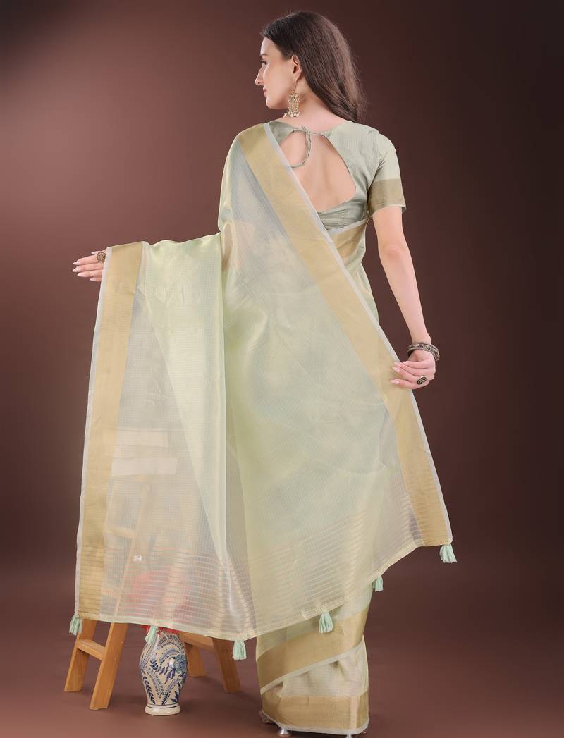 | Product Name | Light Green Organza With Thread Work And Zari Weaving Saree With Blouse | |