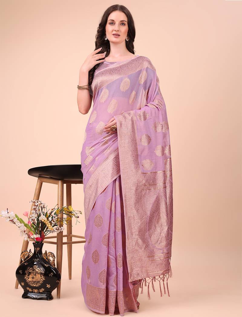| Product Name | Light Pink Cotton Fabric With With Jacquard Work And Zari Weaving Saree With Blouse | |