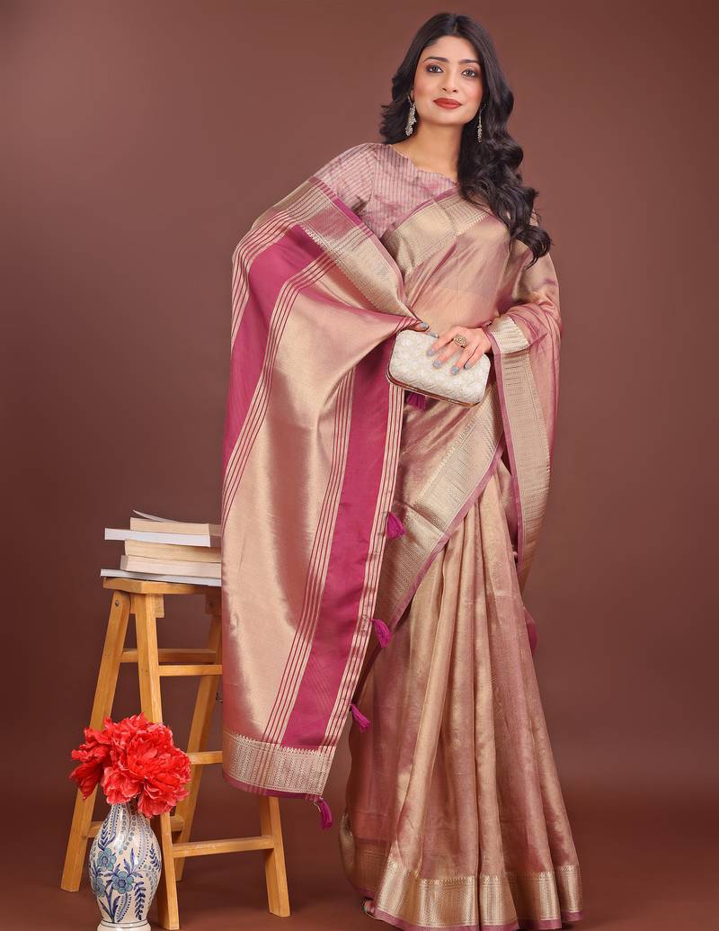 | Product Name | Light Pink Organza With Thread Work And Zari Weaving Saree With Blouse | |