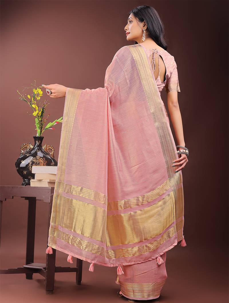 | Product Name | Light Pink Organza With Thread Work And Zari Weaving Saree With Blouse | |