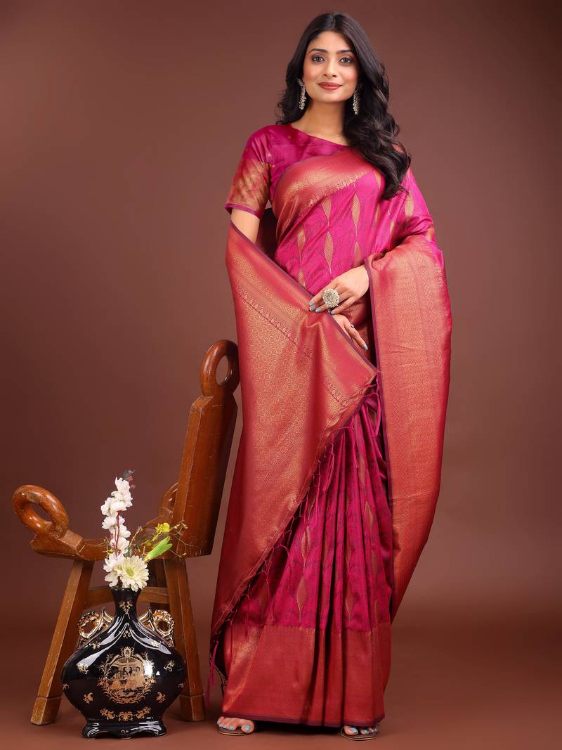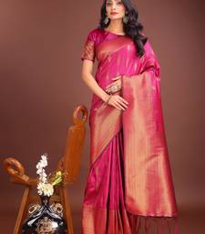 magenta banrasi art silk with jacquard work and zari weaving saree with blouse