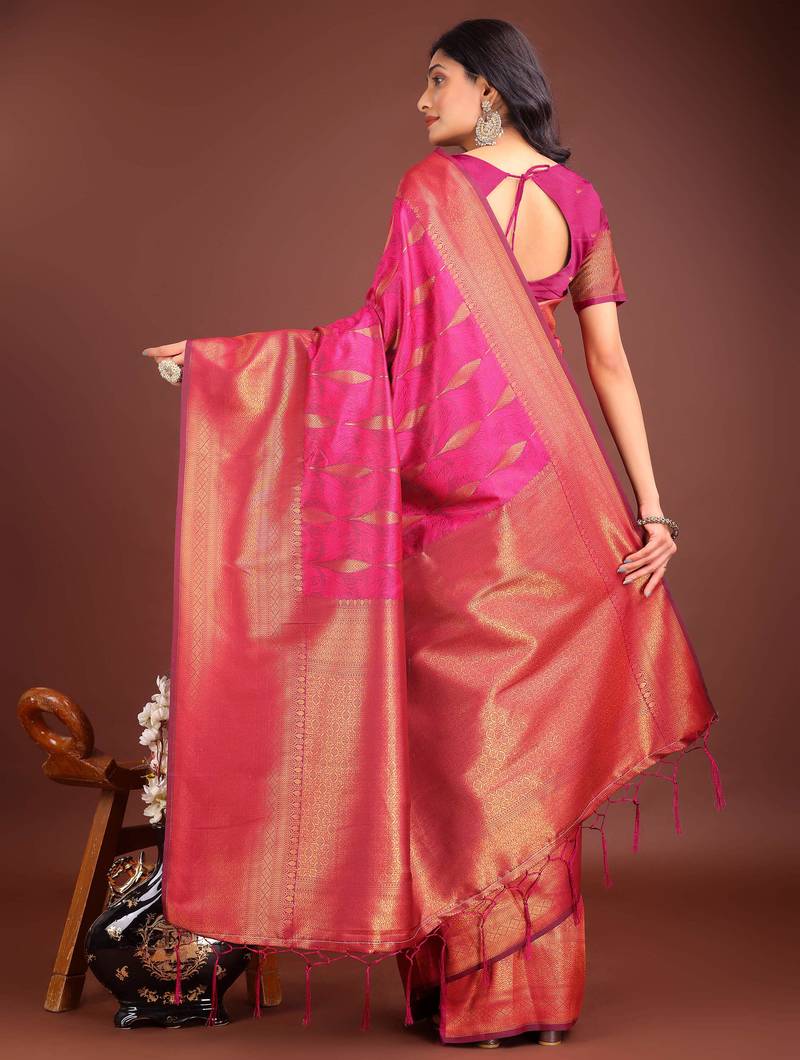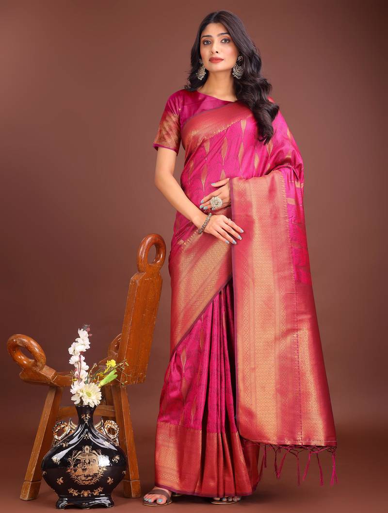 Product Name Magenta Banrasi Art Silk With Jacquard Work And Zari Weaving Saree With Blouse
