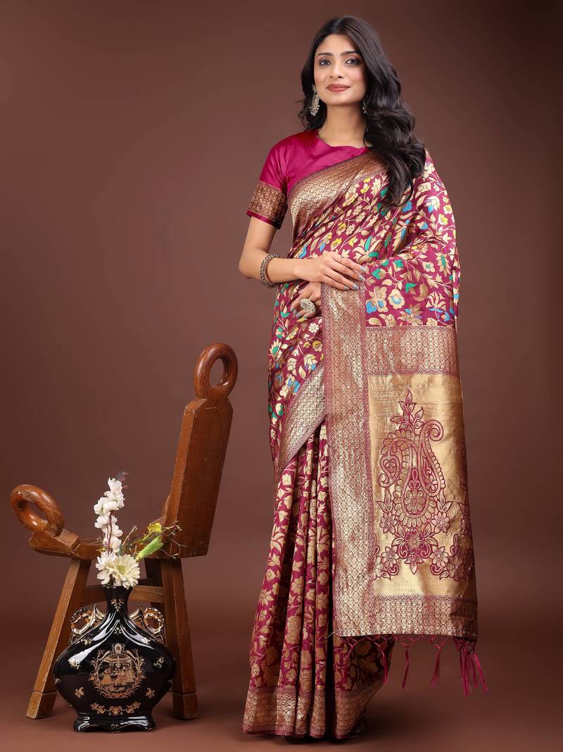 Magenta lichi art silk with jacquard work and zari weaving saree with blouse