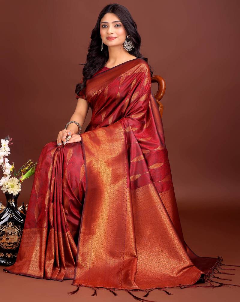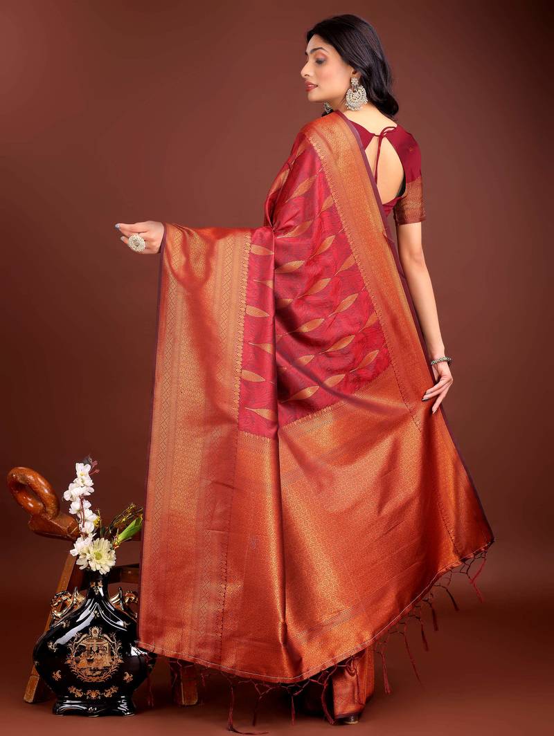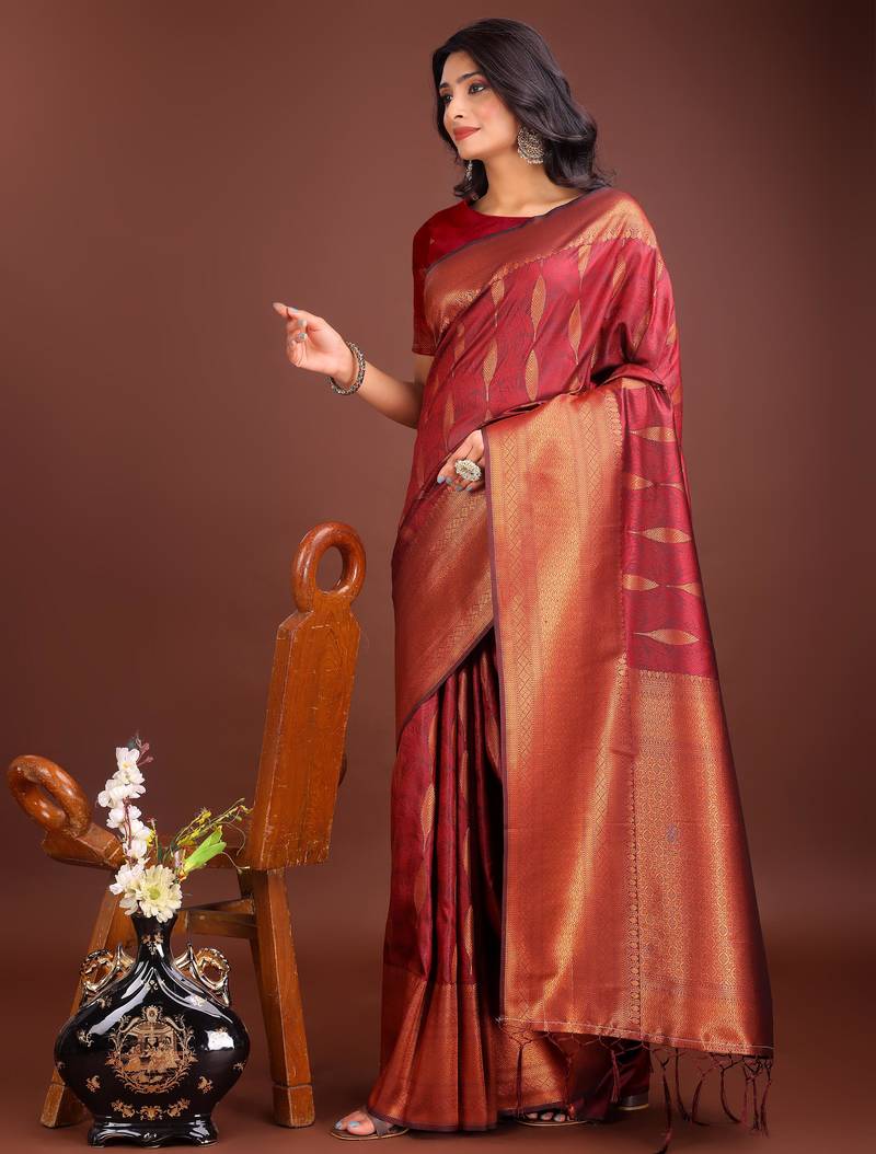 Maroon banrasi art silk with jacquard work and zari weaving saree with blouse