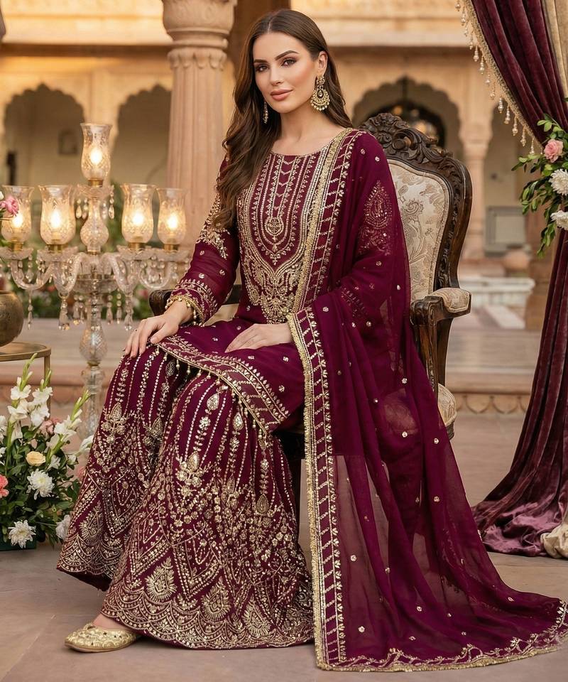 | Product Name | Maroon Georgette Suit With Embroidery & Sequin Work | |