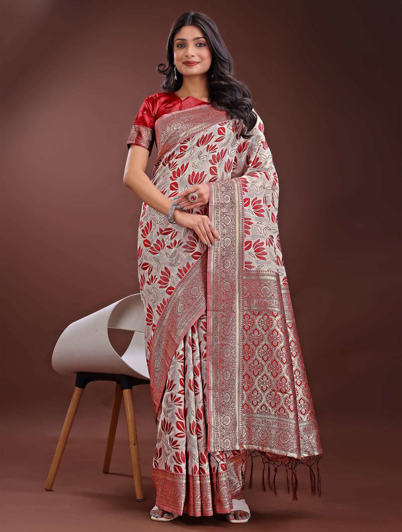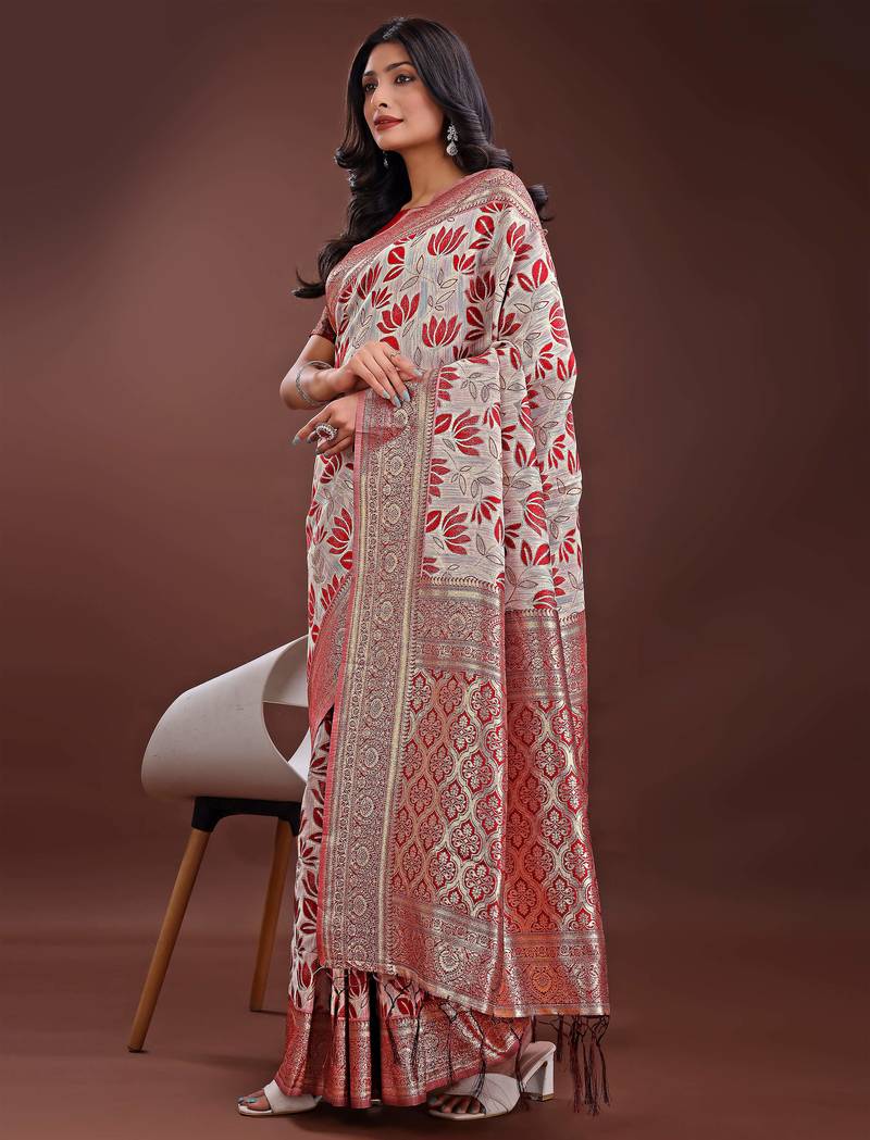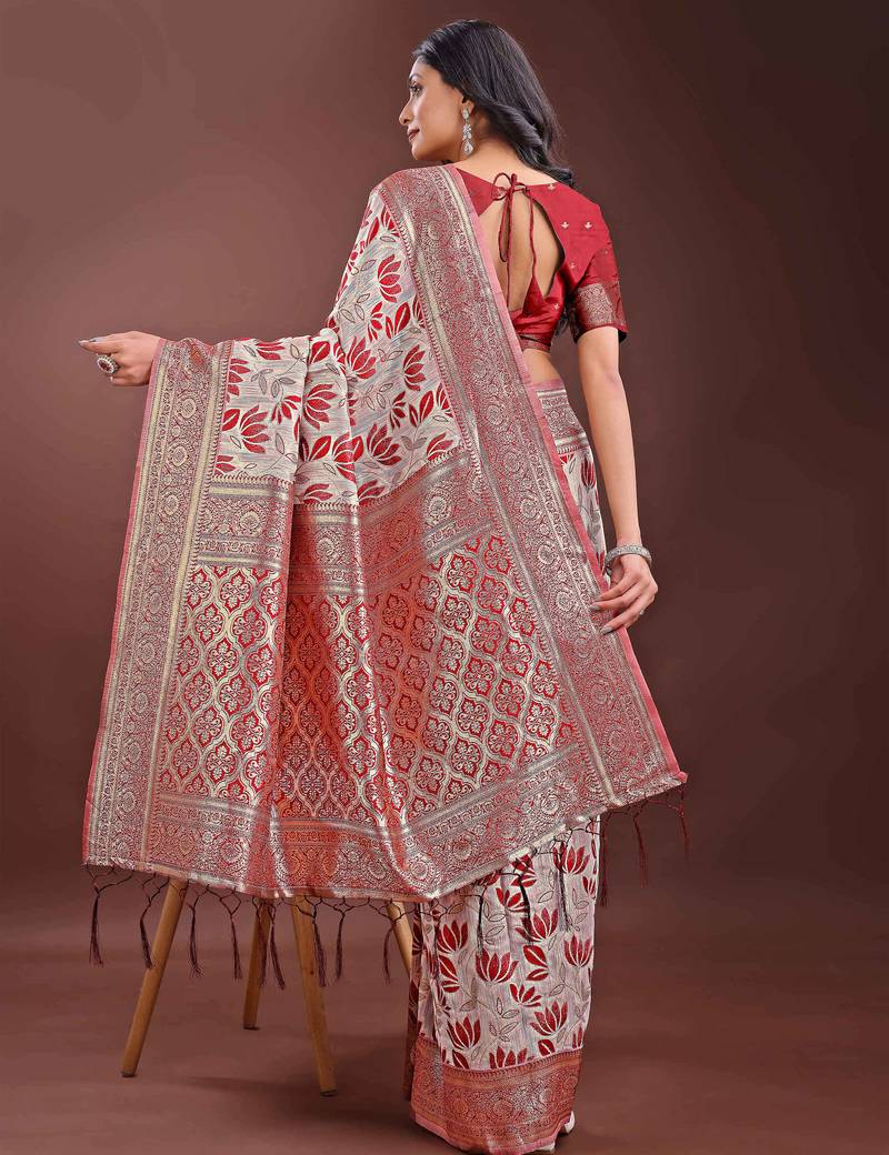 | Product Name | Maroon Linen Cotton With Jacquard Work And Zari Weaving Saree With Blouse | |